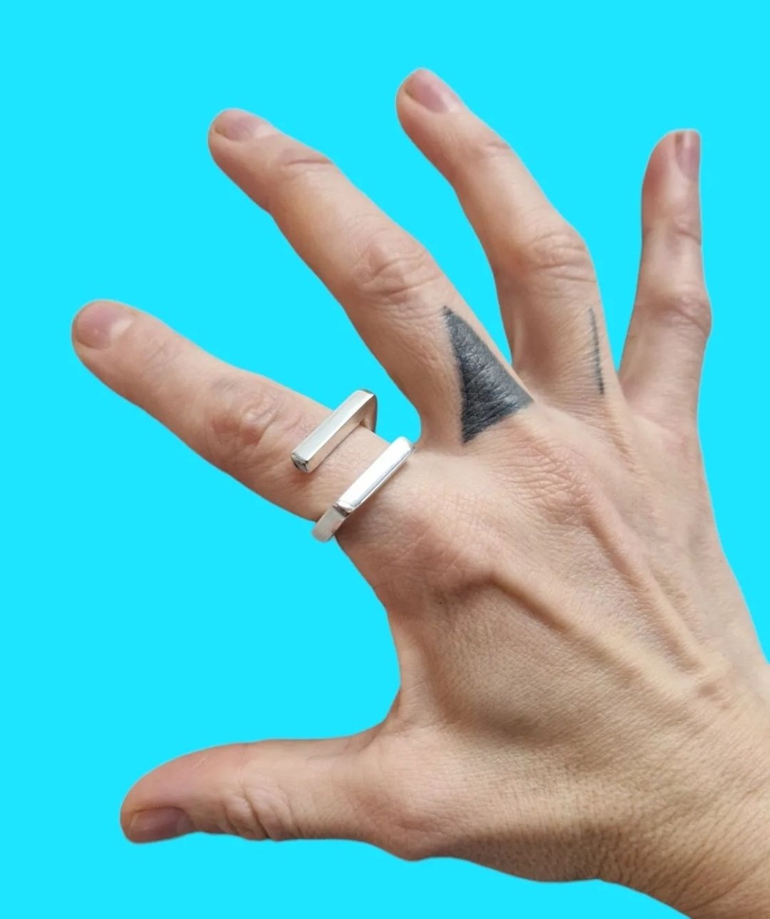 Brutalist and Barbican inspired chunky sterling silver ring .